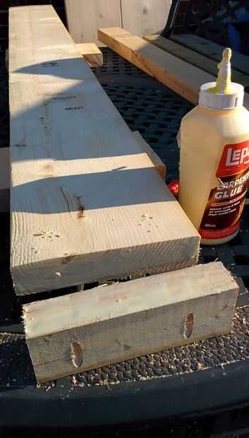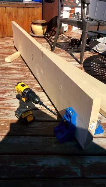 Los estantes de fondo amplio se unieron usando pegamento y tornillos de agujero de bolsillo y luego, afianzado con abrazadera juntos durante 24 horas. Mi kit de posicionador también se vino con unos tapones de muestra que en el estante inferior, pero después de funcionar hacia fuera que me di cuenta de que estaba bien con el aspecto de inacabado agujeros en la parte inferior así no molestaba llenar los otros.