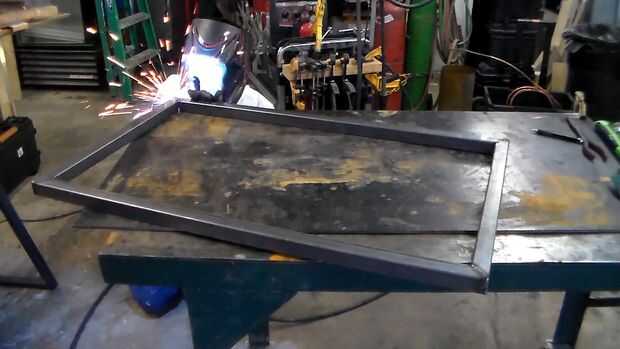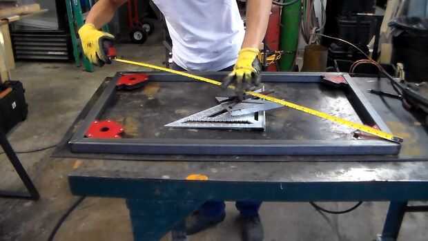 Foto 3-Compruebe su plaza. Soldadura de tachuela incluso puede causar distorsión. La forma más rápida para verificar la escuadra es medir diagonalmente a través de. Si ambas medidas son iguales, eres bueno! Si no, ahora es el momento de martillo, palanca, tire, correa o hacer lo que tienes que hacer para corregir las articulaciones.