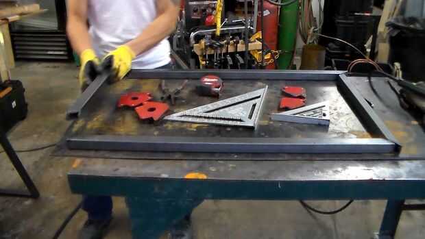 Coloque el tubo cuadrado sobre una superficie plana y cuadrada de las articulaciones. Utiliza imanes de ángulo recto para celebrar todos juntos y comprobaremos mi trabajo con un cuadrado de la velocidad.