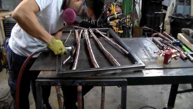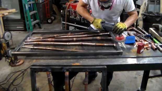 El cobre es limpiar con esponjas abrasivas medias y finos en una muela de matriz y luego dado un pulido final con una rueda que pulimenta y pasta de pulir.