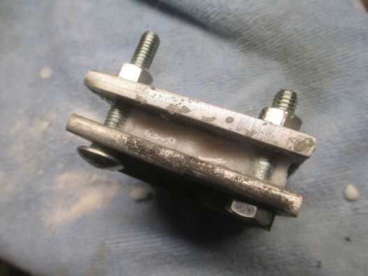 Para la sujeción de la pila, construí dos placas de acero similares al dibujo. No importa mucho cómo espesor las placas siempre y cuando no flexión demasiado. Usé 1/4"(~ 6 mm) y fijar con pernos de 5/16" NC. Si usted es métrica, algo en el tamaño 8 mm funcionaría. Los pernos tienen que ser lo suficientemente largos para que consiga la tuerca totalmente en. He encontrado que tener al menos un perno más largo permitiría que me adjunta un mango a la prensa. Esto va a venir muy bien más adelante.