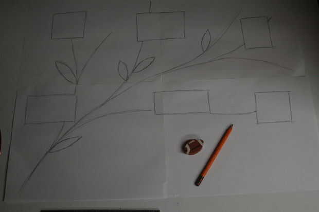 Un bosquejo áspero de lo que usted quiere las ramas como siempre ayuda. Grabó cuatro hojas tamaño carta de papel juntos y luego dibujó las ramas y lugares de marco en él. Esto serviría más adelante como guía para el tamaño del panel de madera y colocar los cables.