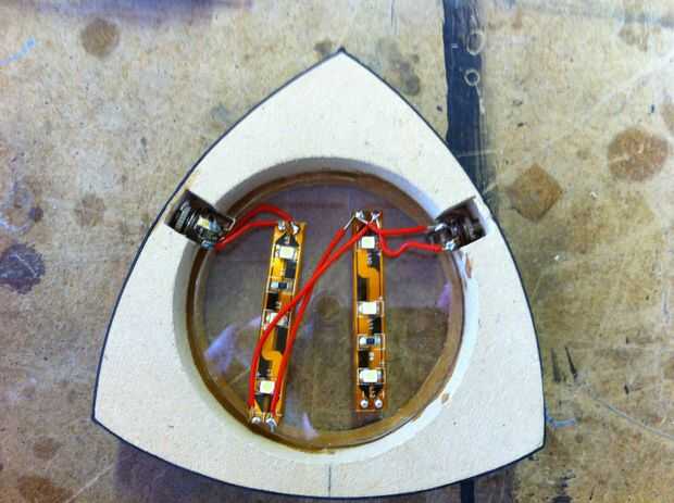 Cada botella se encuentra en una base donde están las tiras de Led. Con dos entradas y una salida en cada base.