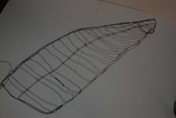 Primero hice el marco externo de la más gruesa cable calibre. Luego añadí un segundo marco en 2 de los tres lados en especie de una cuña (ver segunda foto) para la fuerza y luego conectar los dos.