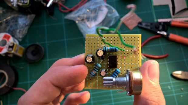 Ahora llegamos a la interesante. Cortar un trozo de 4 cm x 4 cm de Protoboard. Se trata de que su amplificador se instalara sobre. Mira las fotos y diagrama esquemático del circuito. Se usa para guiar a ti mismo en el proceso de instalación.