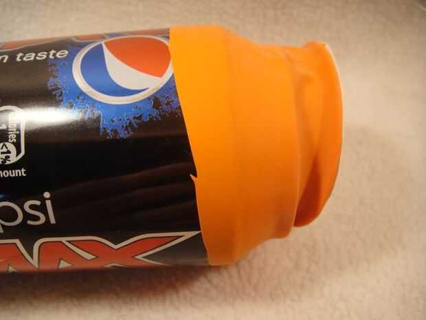 Usar una aguja de coser para perforar un agujero a través del centro de los discos de cartón y enhile el sedal de pesca a través de ese agujero. Estirar el globo sobre la lata. Compruebe que el desplazador se puede mover hacia arriba y hacia abajo libremente.