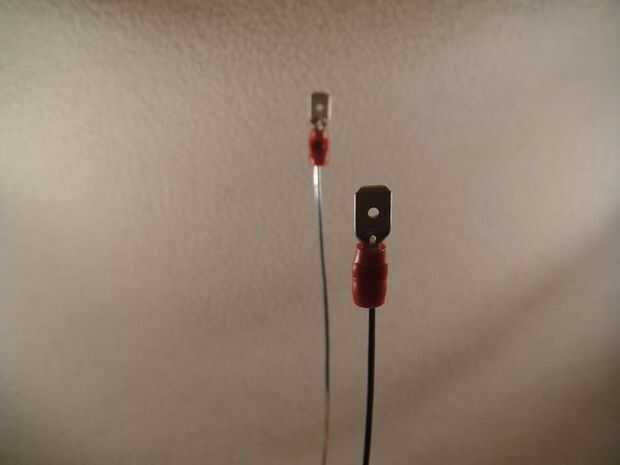 Medida de la tapa de la lata y corte los dos cables hasta unos 15 cm. de la encrespadura en conectores de horquilla dos de los puntos de cojinete