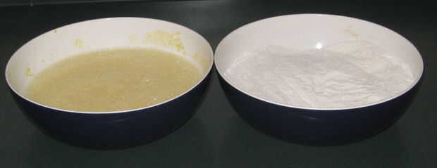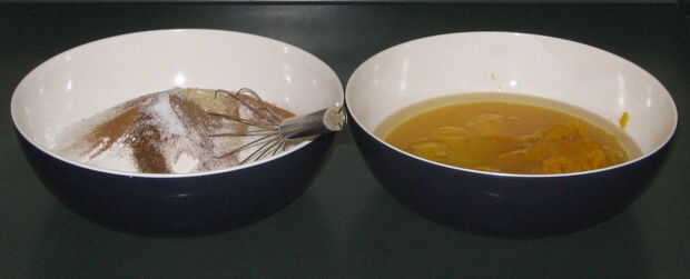 En un recipiente aparte, batir la harina, bicarbonato de sodio, sal, canela, nuez moscada, clavo y jengibre.
