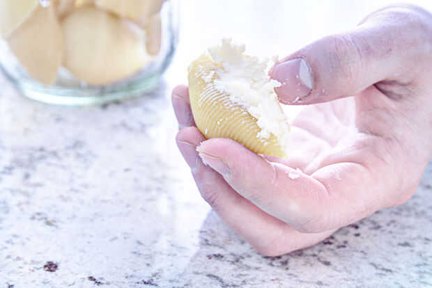 - Cuchara un poco de queso con cualquier extremo abierto de la cáscara.