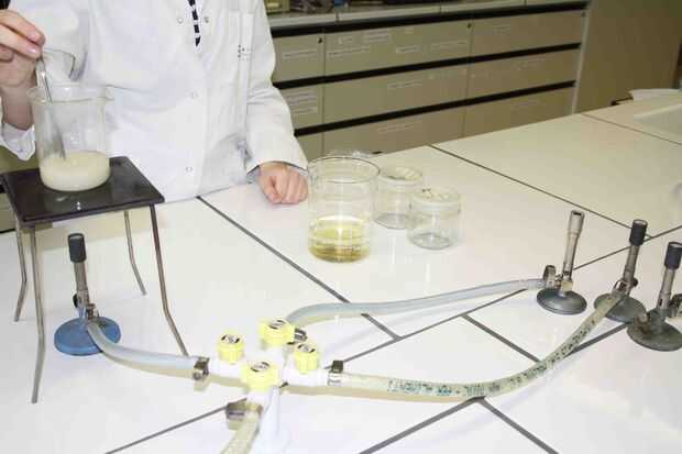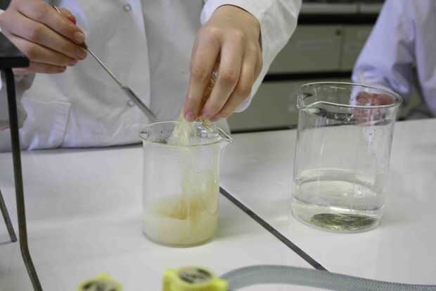 -Calentar la mezcla (utilizamos un bunsenburner, pero las alternativas son un kitchenburner o un horno de microondas) para homogeneizar mejor todo.