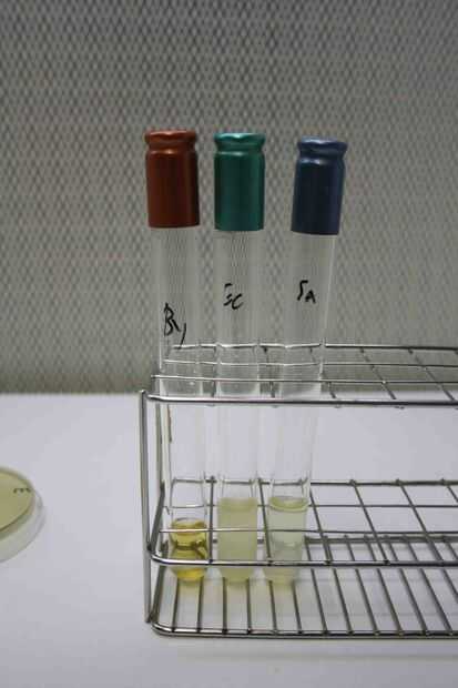 * Esto se hizo por hundir un hisopo estéril (oído) en un tubo con levadura del panadero, e. coli o Staphylococcus aureus y siguiente