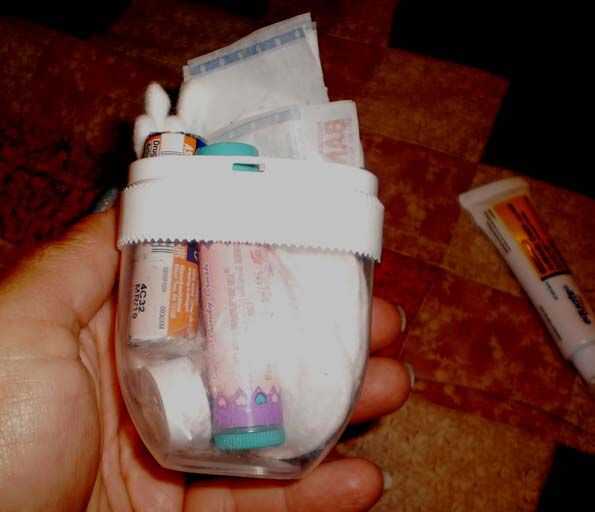 Si es necesario desde somos cristal va excavando en Arkansas con tres niños travieso vacaciones y las rodillas y codos obtener piel cuando estás arriba en las colinas. Todavía quiero añadir una cuchilla de filo única o posiblemente plegable tijera, un par de antihistamínicos y unas fichas de ibuprofeno. Necesito conseguir las pastillas en los blisters de cada píldora en lugar de sólo dejando que ellos traqueteo alrededor en la parte inferior del kit. De esa manera solo puedo agregar dos o tres de cada uno y reponer el alijo, según sea necesario. Sé por experiencia que es las vendas que se acostumbrará más que nada. En retrospectiva, pude han añadido un plástico producir bolsa o un condón no lubricado para hacer la impermeabilización de un vendaje, pero que no se me ocurren en el tiempo.