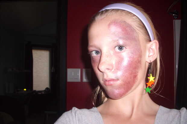 Moretones son causados cuando el trauma embotado rompe los capilares justo debajo de la piel, inundando la dermis con sangre. Como la hemoglobina en la sangre se descompone y dispersa, golpes cambian de color y fade. Hoy voy a estar demostrando cómo