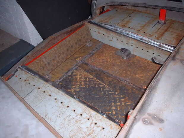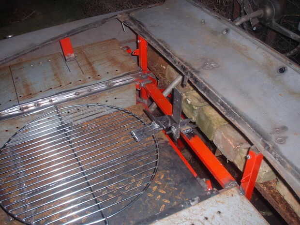 Una vez que las piezas principales se aseguraron alrededor de piezas de la subestructura hice interna con treadplate pesado (donde se establecería el fuego) alineados a los lados (para sujetar utensilios etc.) con hoja de acero recuperado y equipado con una parrilla circular.