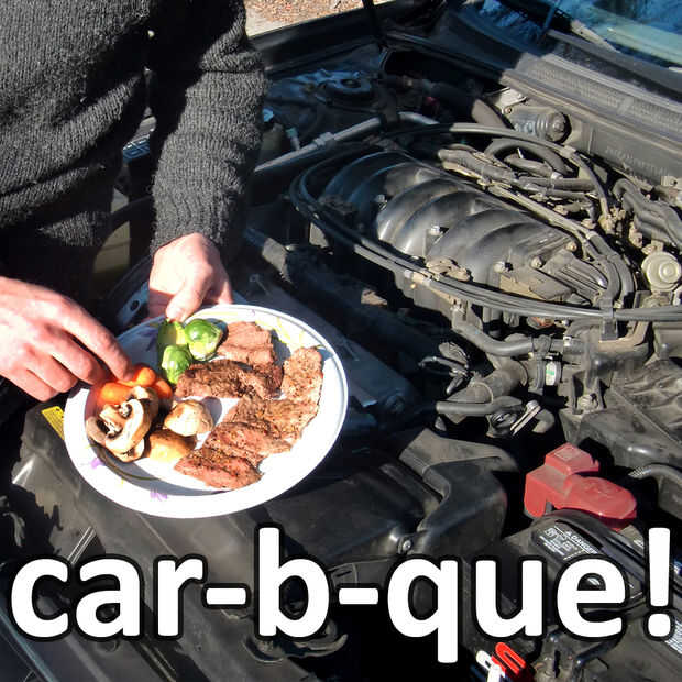 Estos manjares sentados se preparó de antemano y cocinados en ruta a un destino de viaje de camino 2,5 horas fuera de la ciudad (480 km/300 mi) usando nada pero el calor de la salida de un sedán estándar. Seguir y hacer su propia versión de la comida rápida de esta cocina de countercluture clásico.