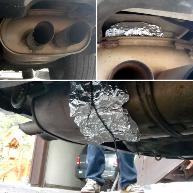 Coloqué unos sándwiches de queso envueltas en papel aluminio en la parte superior y había asegurado con ataduras de cremallera más. Los que os adjunto en la parte inferior del silenciador se pierden en el tránsito, no recomendamos colocar la envoltura de alimentos en cualquier lugar pero en la parte superior.