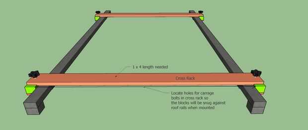 mi SUV Buick no vienen con ninguna barras transversales. Vi una serie en Ebay por unos $120,00 pero aún, tendría que averiguar cómo montarlo en el rack de techo compré. Un viaje a la ferretería y $10.00 más tarde, se me ocurrió con esta configuración