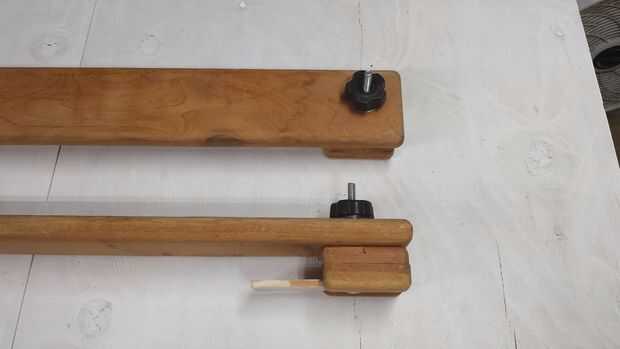 El espesor del bloque verde entre las ranuras superiores e inferiores debe ser ligeramente menor que el espesor de los rieles de los coches. Hacer las ranuras más profunda o menos profundas para lograrlo. Esto permitirá algunas de sujeción del riel cuando usted apriete los pomos de estrella.