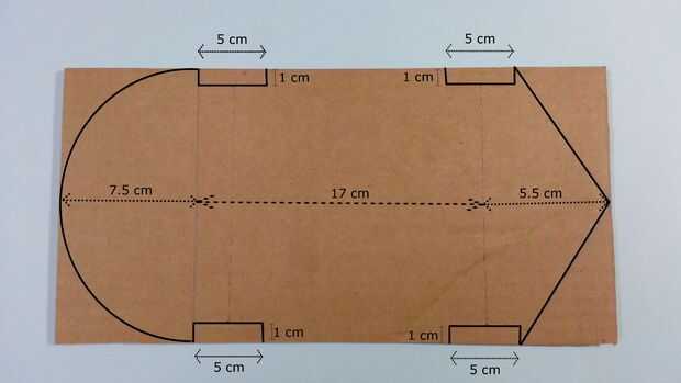 1. hacer las marcas en el cartón como se ve en la imagen y corte a lo largo de las líneas marcadas sólidas.