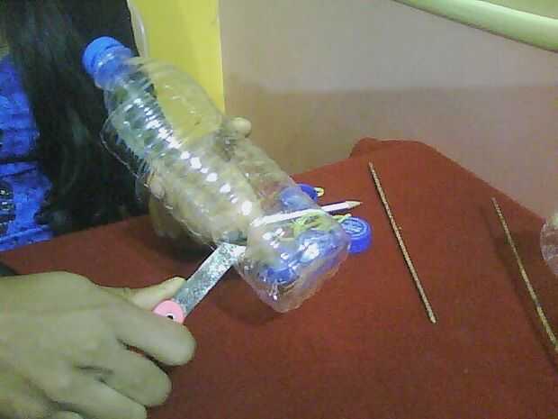 Tome una botella de plástico cortada la superficie superior de la 6¨ de bottele junto con la botella y 2¨width con la ayuda de cuchillo como se muestra en el pitchure.