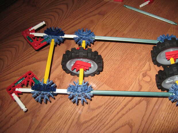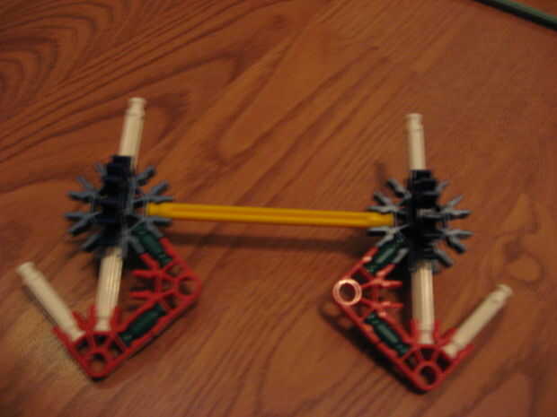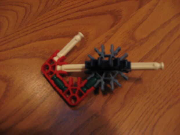 5. Fije dos conectores de esquina roja como se muestra en la imagen y luego una barra blanca en el extremo abierto del conector rojo.