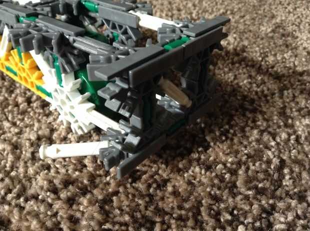 el Yakul 31415 tiene dos bandas de goma envueltos alrededor de una pieza en el eje de propulsión. las ruedas grandes permiten viajar más lejos y le dan velocidad. el parachoques es la única arma. Anteriormente tenía una barra en frente de otro coch