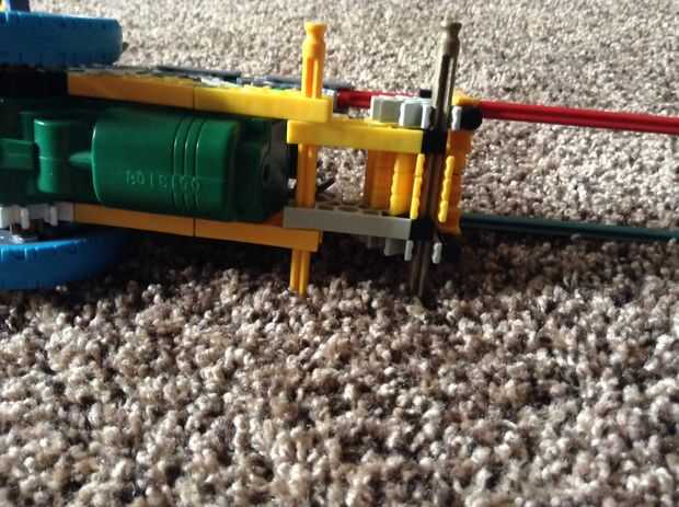 el Yakul 31415 tiene dos bandas de goma envueltos alrededor de una pieza en el eje de propulsión. las ruedas grandes permiten viajar más lejos y le dan velocidad. el parachoques es la única arma. Anteriormente tenía una barra en frente de otro coch