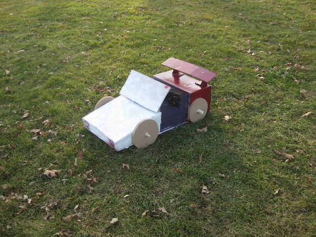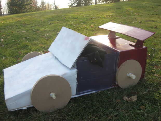 Como es, este coche de toda la raza está hecha de cartón, pegamento del gorila y madera (ruedas y clavijas sólo).