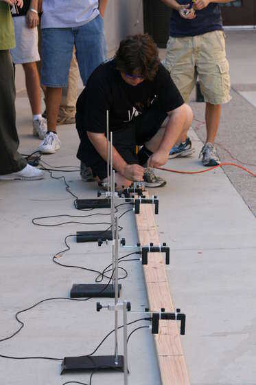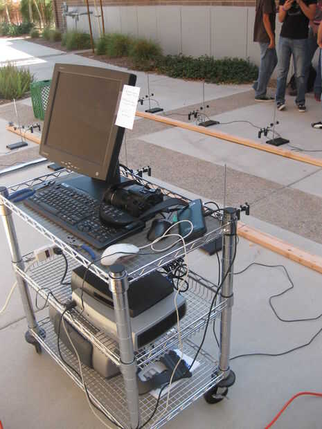 Usted será calcular la aceleración de tu coche cohete usando el equipo vernier. Los photogates tiempo el coche mientras viaja por la pista. Habrá 5 photogates espaciados por la pista, el coche rompe el haz de la fotopuerta inicia un temporizador y registra un tiempo cuando la viga restaura registros una segunda vez. Como el coche recorre los 5 photogates recibirá una serie de 10 mediciones, esto le permitirá hacer los cálculos.