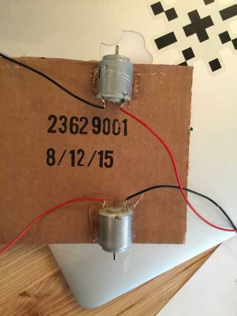 Pegamento caliente 2 motores en el lado en el lado opuesto de la batería como ejes.