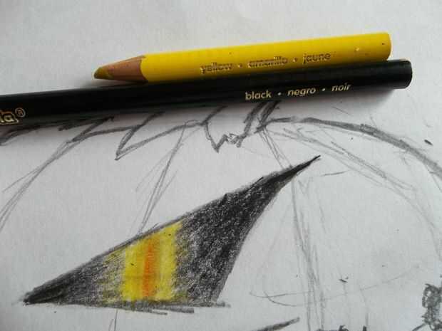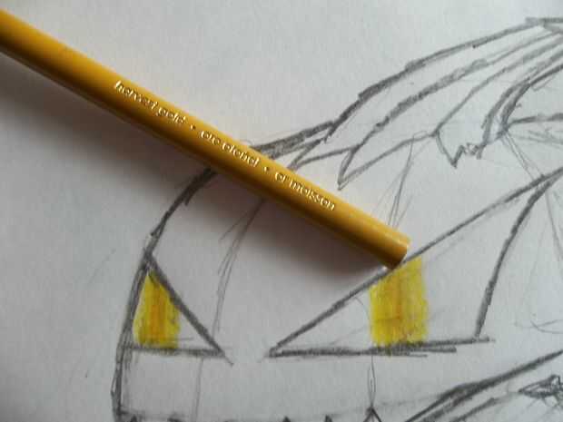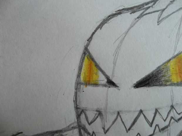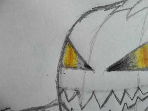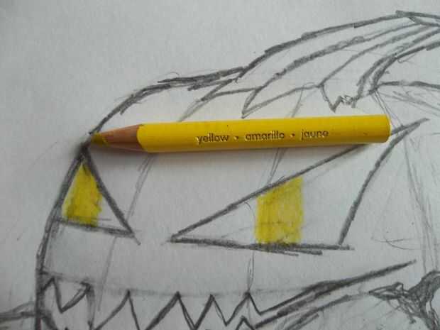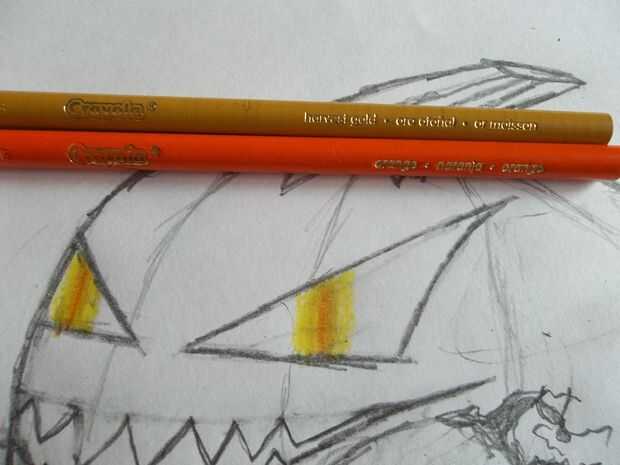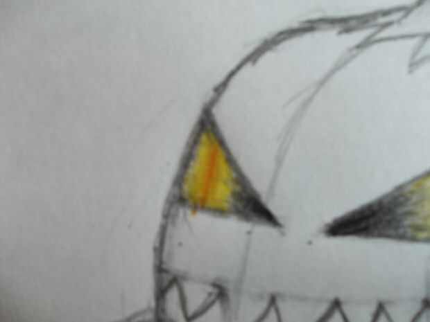 Comienzo con la adición de una base de amarillo que mezcla un poco de cosecha oro a oscurecerse hasta un poco. Que añadir un poco naranja para formar el centro. A continuación se utiliza el negro Inicio pesadamente alrededor de los lados más alejados de la luz en el centro del ojo de luz la oscuridad a medida que se acerca a la luz de los ojos. Añadir también un poco amarillo al negro alrededor del ojo para hacer que aparece brillar intensamente amarillo no blanco. Usar negro para color en la boca en este paso.