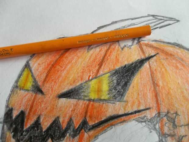 Las líneas en la calabaza debe ser la naranja más oscura. Después de agregue ligeramente naranja a todo el cuerpo. De sombra dura y poco a poco conseguir más ligero mientras trabaja desde la línea al centro entre dos líneas. Que usted tome mango y sombra ligeramente las áreas claras del cuerpo calabaza para darle una apariencia más natural.
