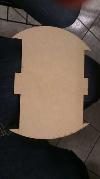 El chasis será el cuerpo principal del vehículo. Cada elemento tiene que ser pegado a él por lo que usted quiere asegurarse de que tiene un tamaño adecuado. El chasis del coche necesita ser diseñado usando un software de Corel, puede ser Corel Draw o SolidWorks. En este caso, va a ser diseñado con SolidWorks. El chasis se hace de MDF y la manera más fácil de cortar es usando un cortador láser. Usted necesitará guardar su diseño con el. Extensión DXF (acrónimo de objeto 3D) para poder imprimir usando el cortador del laser. El chasis terminado se muestra en la siguiente imagen. Usted tendrá que imprimir dos veces. El primero de ellos se utilizará como la base. Aquí se adhieren todos los componentes principales: Arduino, motores y la batería. El segundo de ellos se utilizará como una protección que va a ir en la parte superior esta una primera. El servomotor se pega al segundo diseño demasiado.