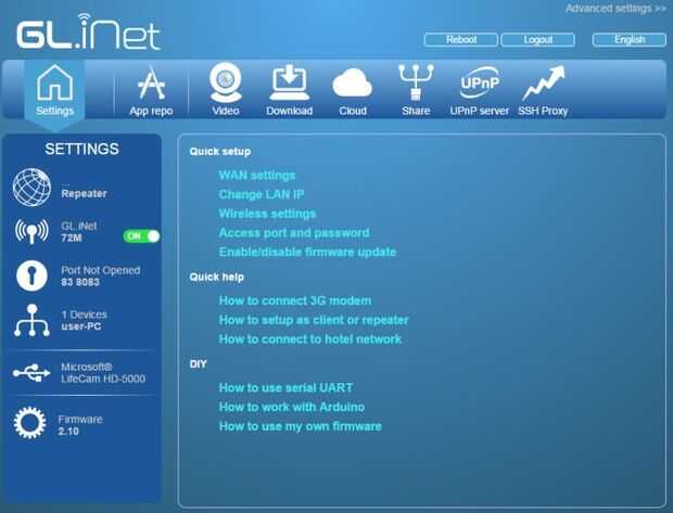 El GL.iNet router inalámbrico viene con OpenWrt barrera Braker preinstalado, incluye su interfaz de nuevo diseño web fácil de usar para configurar el router. Vaya a http://192.168.8.1 y entrar en el router, la interfaz de la web de GL.iNet debe aparecer en la pantalla.