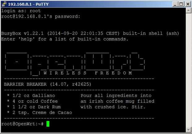 - SSH al router y ejecutar el comando línea por línea, prefirió la masilla.