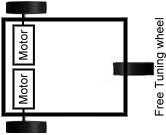 3. Dos ruedas y los motores de coche en la parte posterior.