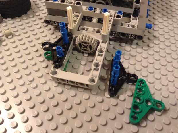 Esta parte forma la plataforma de tracción delantera, la dirección y los paneles de la carrocería frontal. Sistemas de dirección compactos Lego pueden requieren piezas especiales. Usted puede obtener sin ellos en algunos casos pero terminará con mucho bulto.