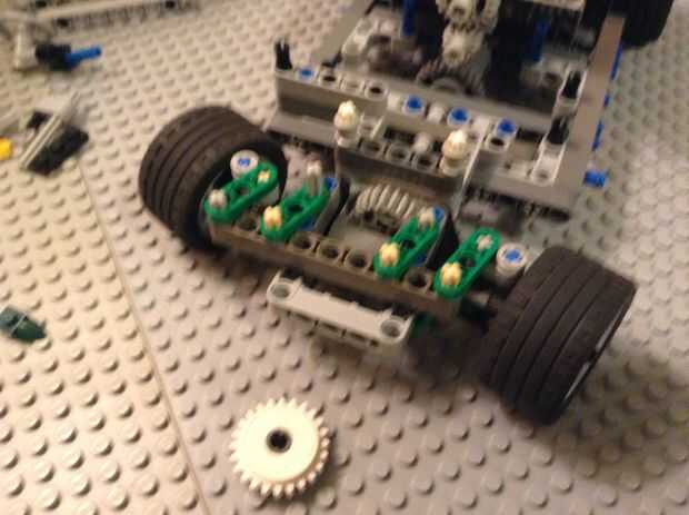 Punta de LEGO RC: leer para obtener conocimientos sobre sistemas de impulsión de rueda delantera de dirección ackerman, juntas universales y diferenciales. Tenga en cuenta, para ahorrar espacio que no llevar a la práctica de dirección ackerman en mi modelo.