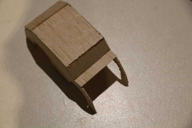 Medida de la capucha. Para obtener otra pieza de madera de balsa cortada a las dimensiones de su capó luego pegamento en la ranura de la tapa.
