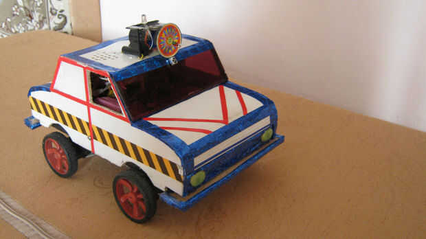 Hice este robot con madera y cartón y utilizando IC atmega 8 para la memoria y lo escribí para el lenguaje BASIC
