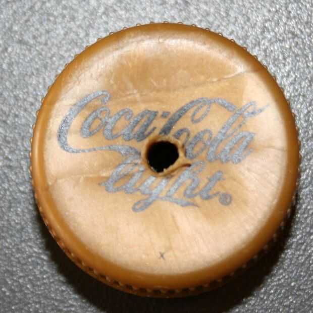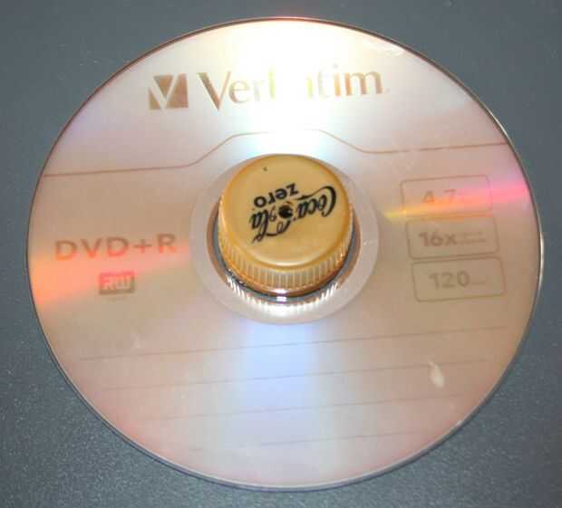 Hacer un agujero en la tapa de la botella con un alambre caliente. Pegar la tapa sobre el CD/DVD como se muestra. Debe estar en el centro. La rueda, cuando montado en el eje, no debe poder moverse. El eje transfiere el movimiento de rotación a las ruedas.