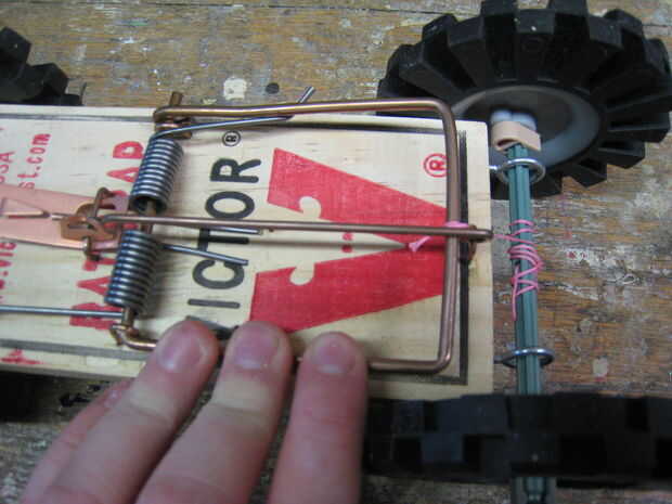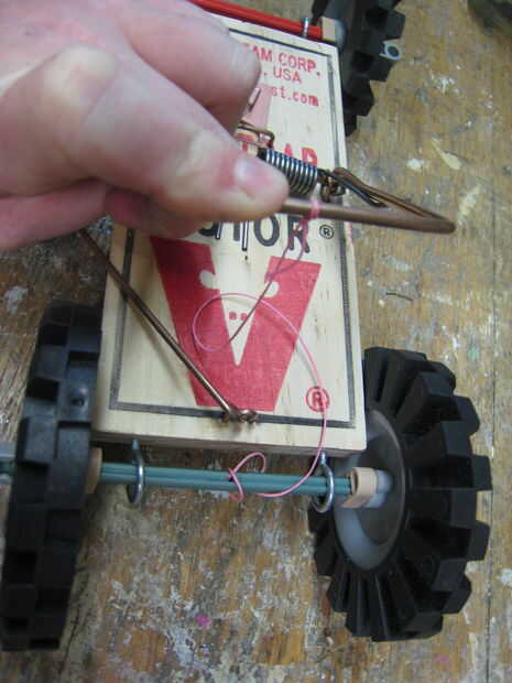 un coche de la trampa para ratones es un ejemplo simple de la conversión del potencial en energía cinética.Si un par de residuos de madera, consumo de tubo, posavasos de cerveza o viejo CD usted puede utilizarlos para construcción.Si tienes un kit co
