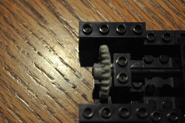 poner el engranaje con dientes curvados en el extremo del eje impulsor. (se ajustará más adelante)