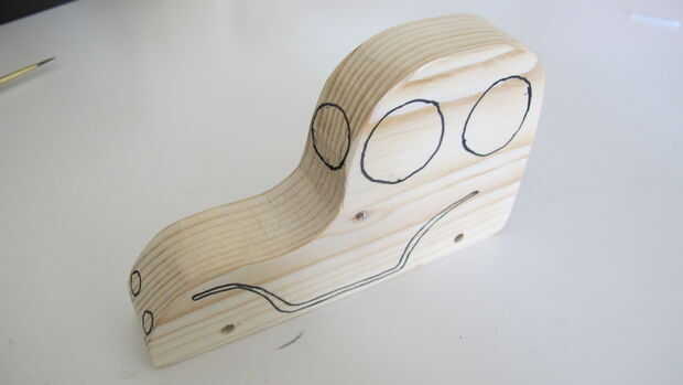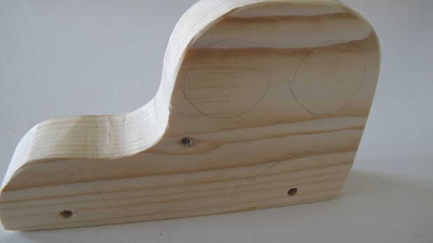 coche de madera simple, orgánico, no tóxico para los niños encantadores de yor.Paso 1: Cortar la carrocería con sierra caladora. No usar cualquier herramienta regla o ángulo. Utilice los ojos para darle una forma redonda angular a la madera. Utilice