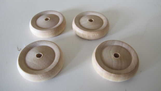 Mi plan original era hacer una ruedas de madera con un taladro y una sierra, pero desde que tuve estas ruedas en casa (las compré una vez en una tienda de bricolaje), acabo de ir con ellos.