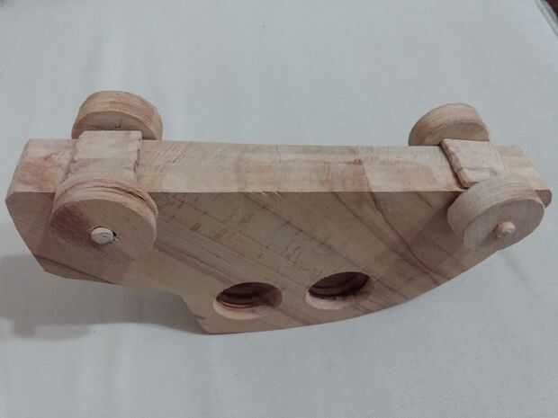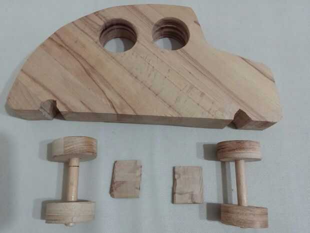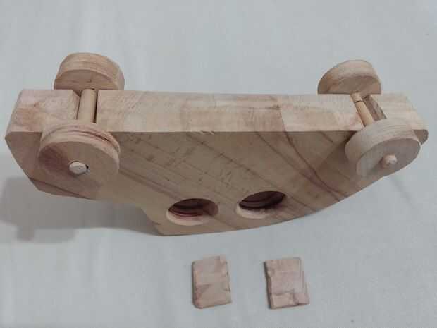 conectar las ruedas en los molinos. los molinos son un par de palillos. luego ponerlas a sus lugares. y las piezas de madera del rectángulo sobre ellos. Asegúrese de no utilizar el pegamento! porque tenemos que hacer la rueda pega gire.