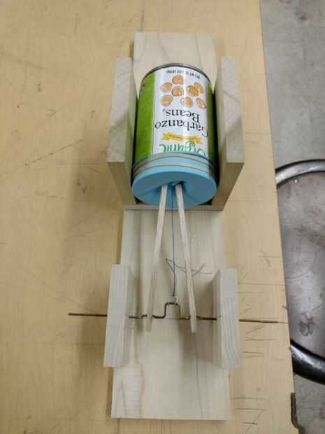 Aproximadamente 1 centímetro del hilo, meter dos chinchetas a través del globo, uno a cada lado del hilo. A continuación, coloque el cilindro de desplazamiento dentro de la lata y coloque con cuidado el globo sobre la abertura de la lata. Uso dos gomas dos asegure el balón en el lugar. Introduzca el cilindro del motor en el soporte del motor y usar cierta variedad de cinta (conducto) o pegamento (pegamento caliente) para fijarlo en su lugar. Coloque las varillas de soporte al diafragma presionando firmemente las chinchetas en los extremos de las varillas. A continuación, Enhebre el hilo hasta el eje.