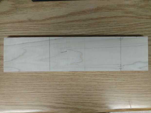 Para empezar, corta un trozo de madera de chopo que es 10,3 cm de ancho por 43,2 cm de largo. Esta será la base de su coche.