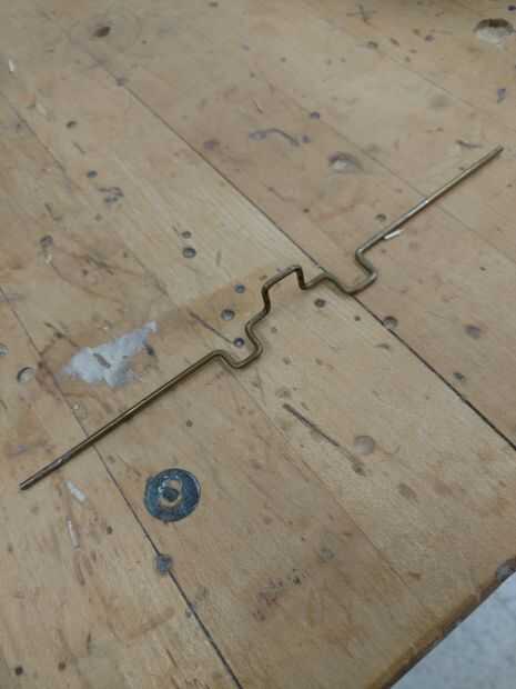 A partir del centro, utilice alicates para doblar el gancho de ropa en la forma como se muestra en la foto de arriba (se observan las mediciones). Tenga en cuenta que el eje debe ser simétrico, por lo que las dimensiones son las mismas en ambos lados.