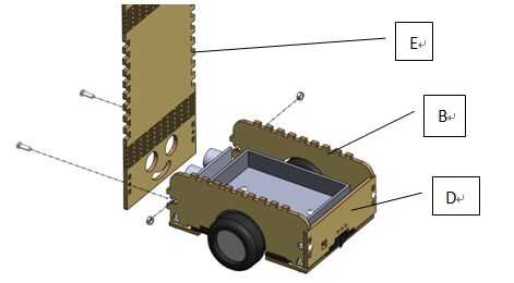 Instale el tablero de astillas de madera E como se muestra y asegure con tornillos y tuercas.
